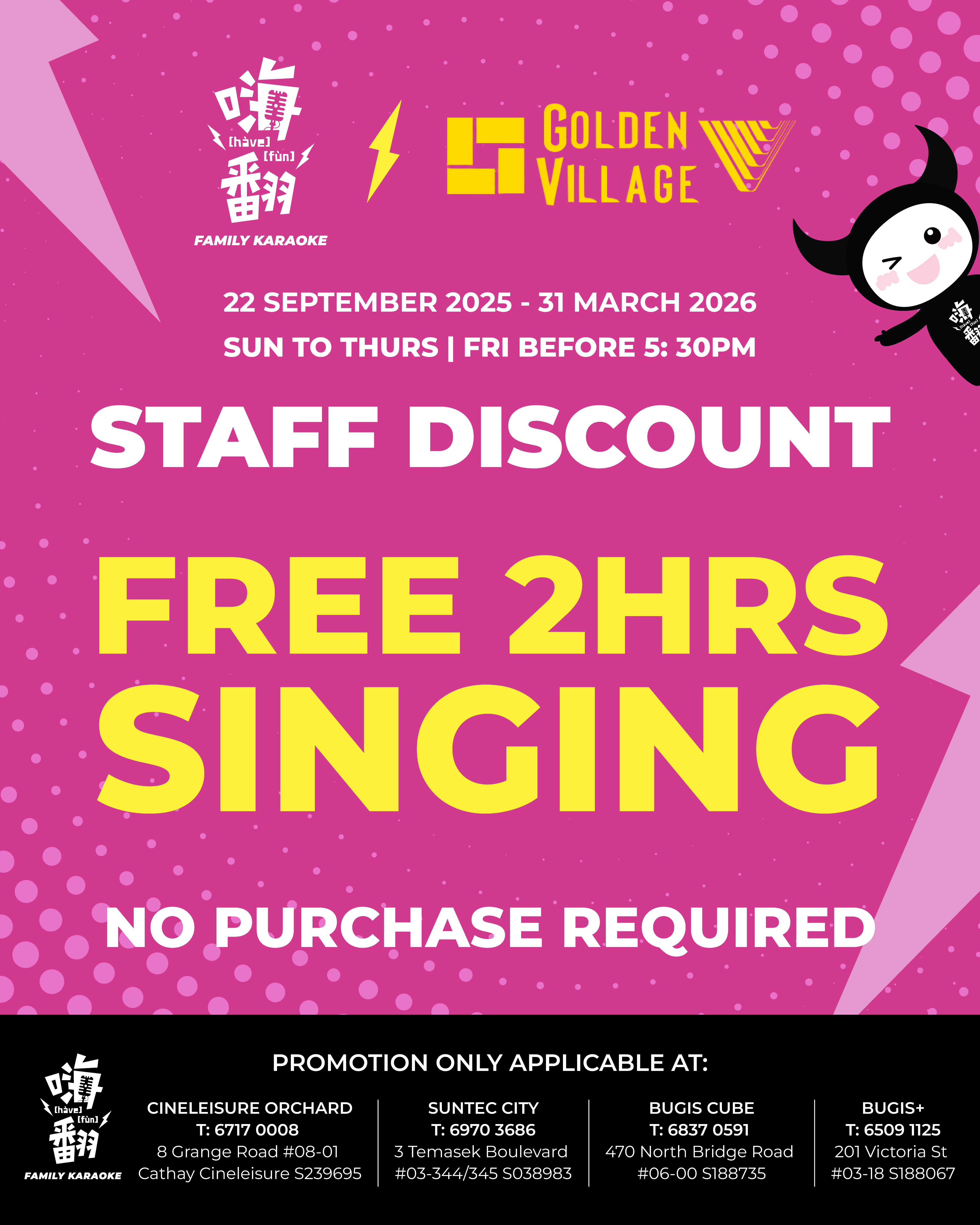 Complimentary 2 Hour Singing Session for Golden Village Staff With No Purchase Required